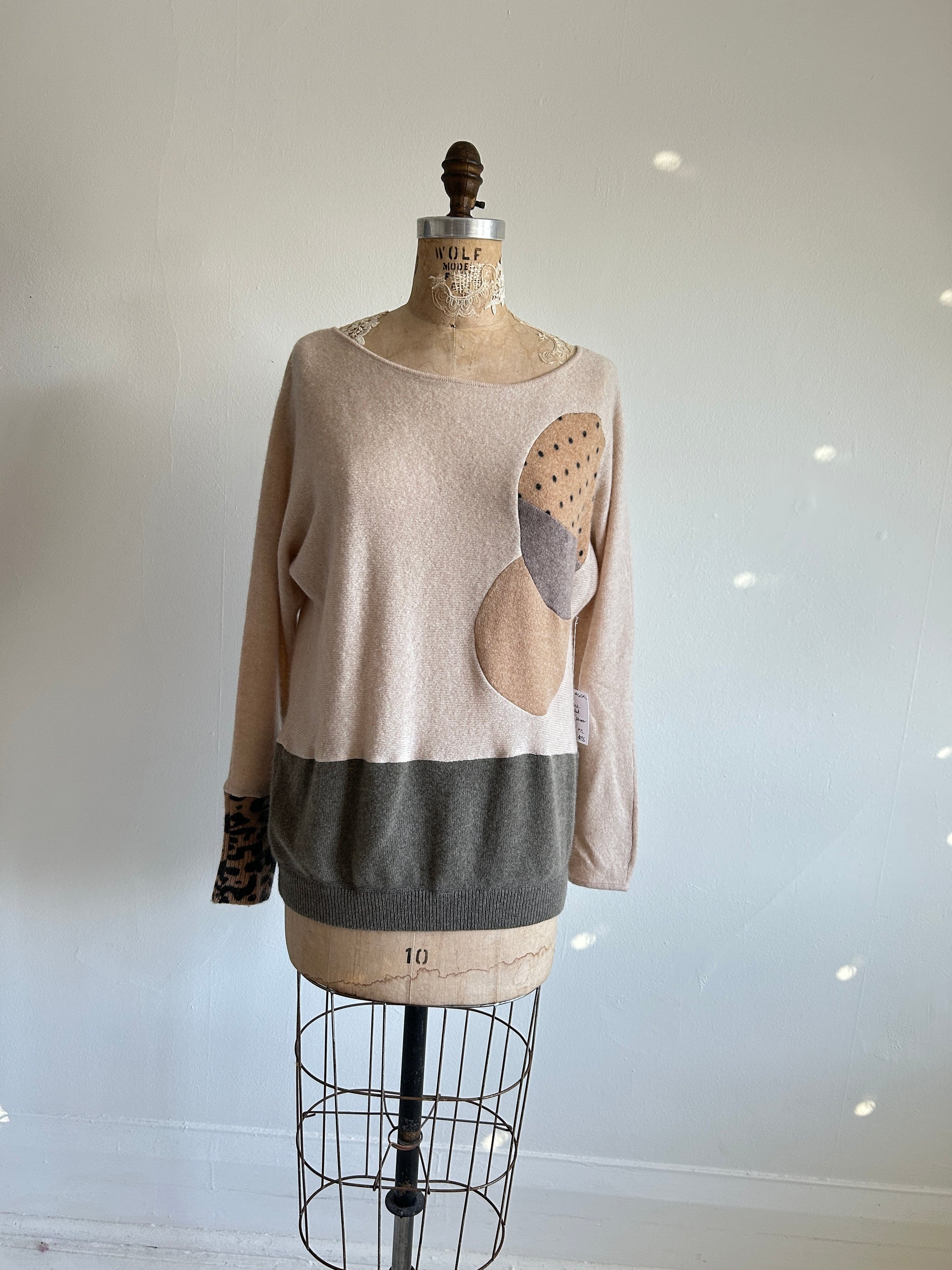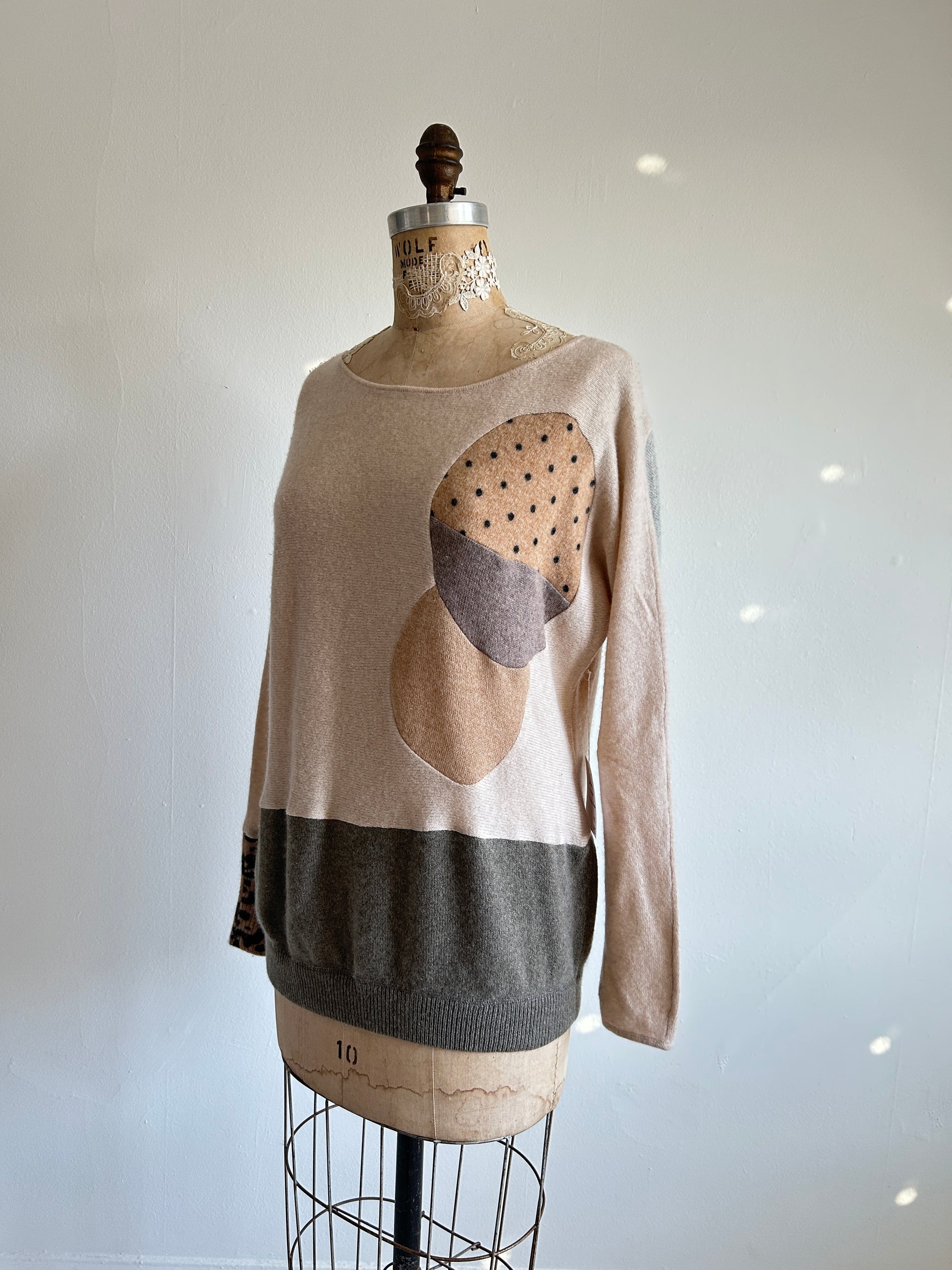 Abstract Art Patched Upcycled Cashmere Sweater M/L #CASML6