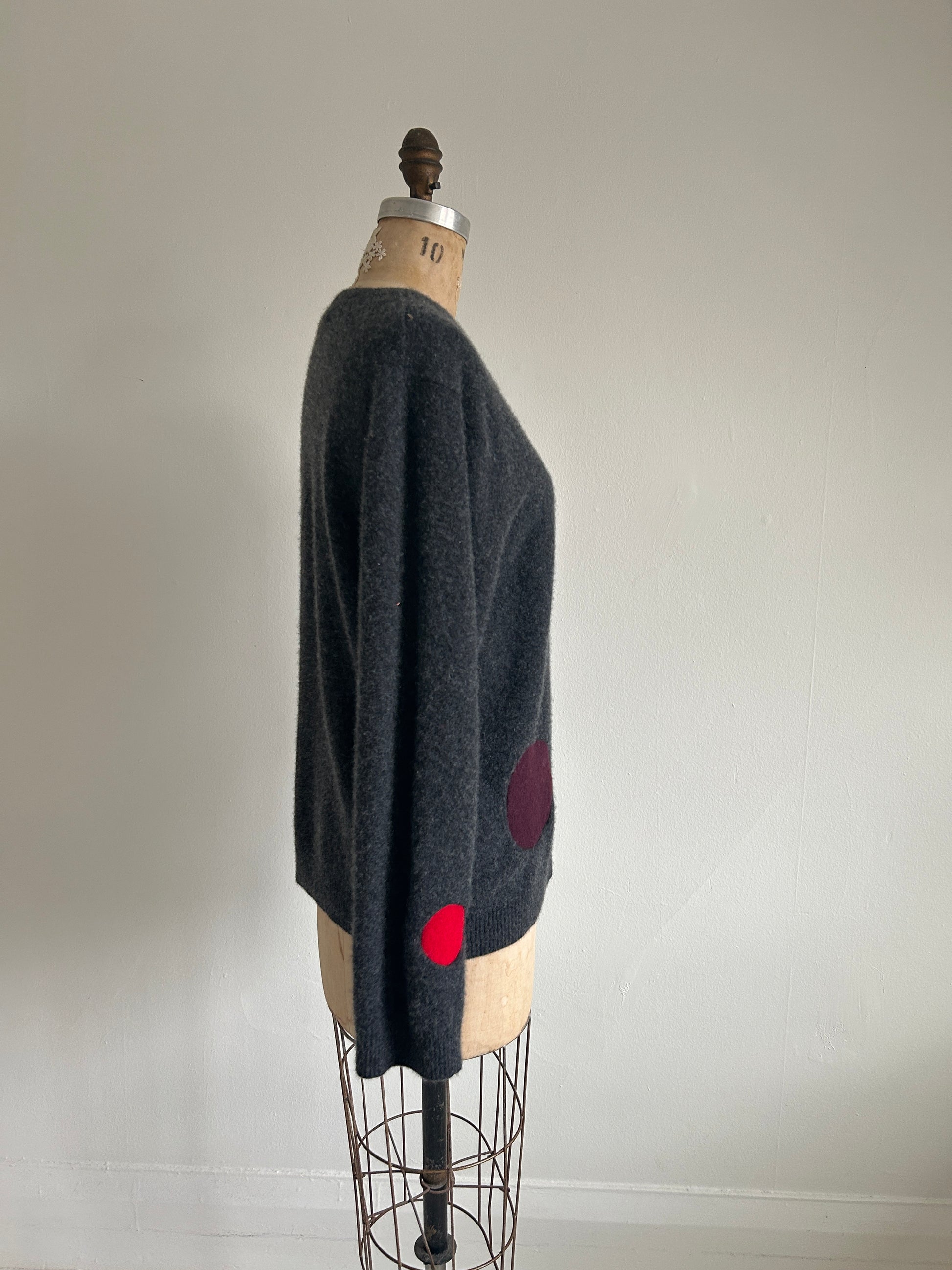 This upcycled cashmere sweater is eco chic, with one-of-a-kind, thoughtfully placed, inset patches - making it a modern piece of wearable art.