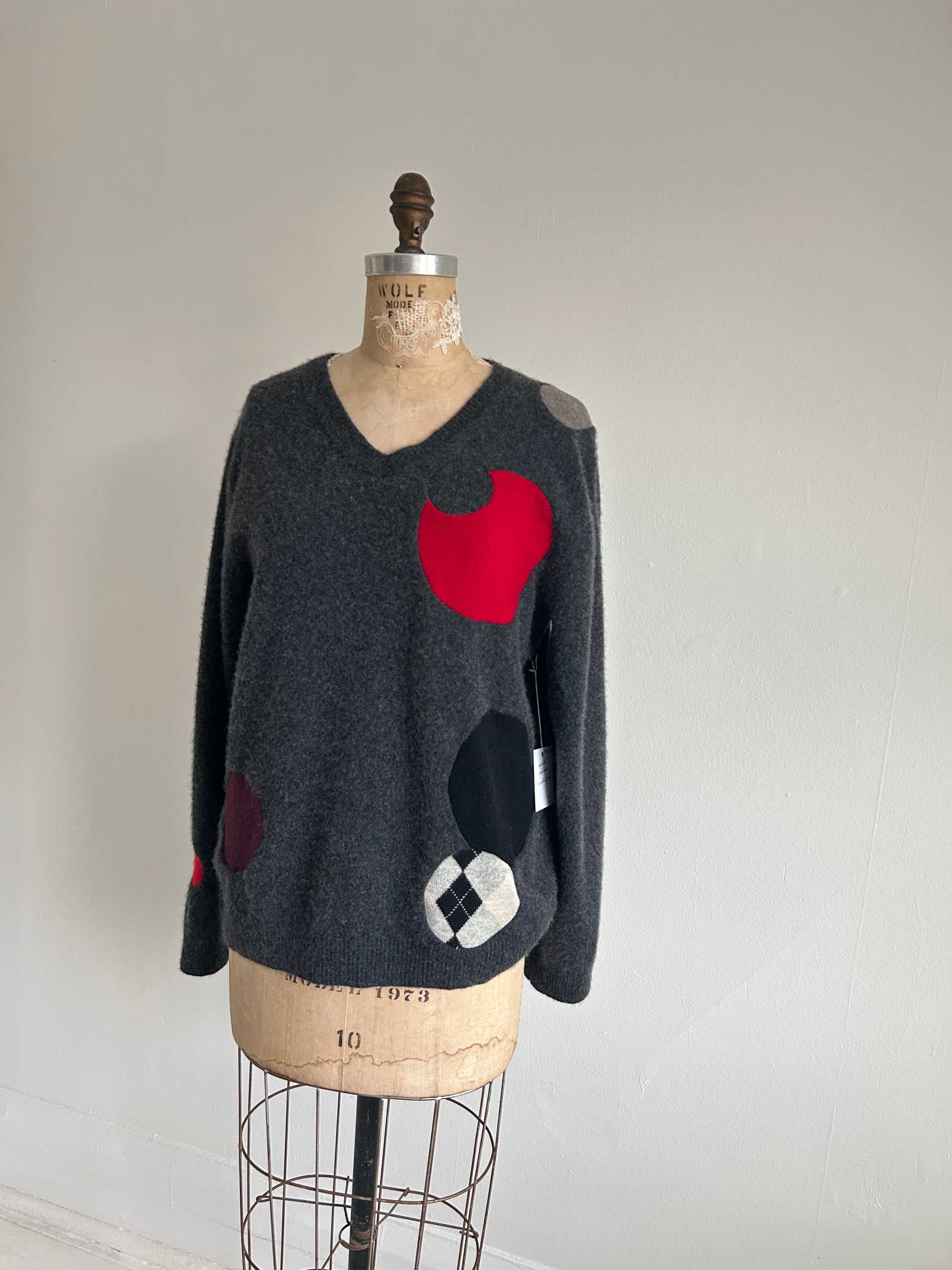 Abstract Art Patched Upcycled Cashmere Sweater XL/2X #CAS23X29