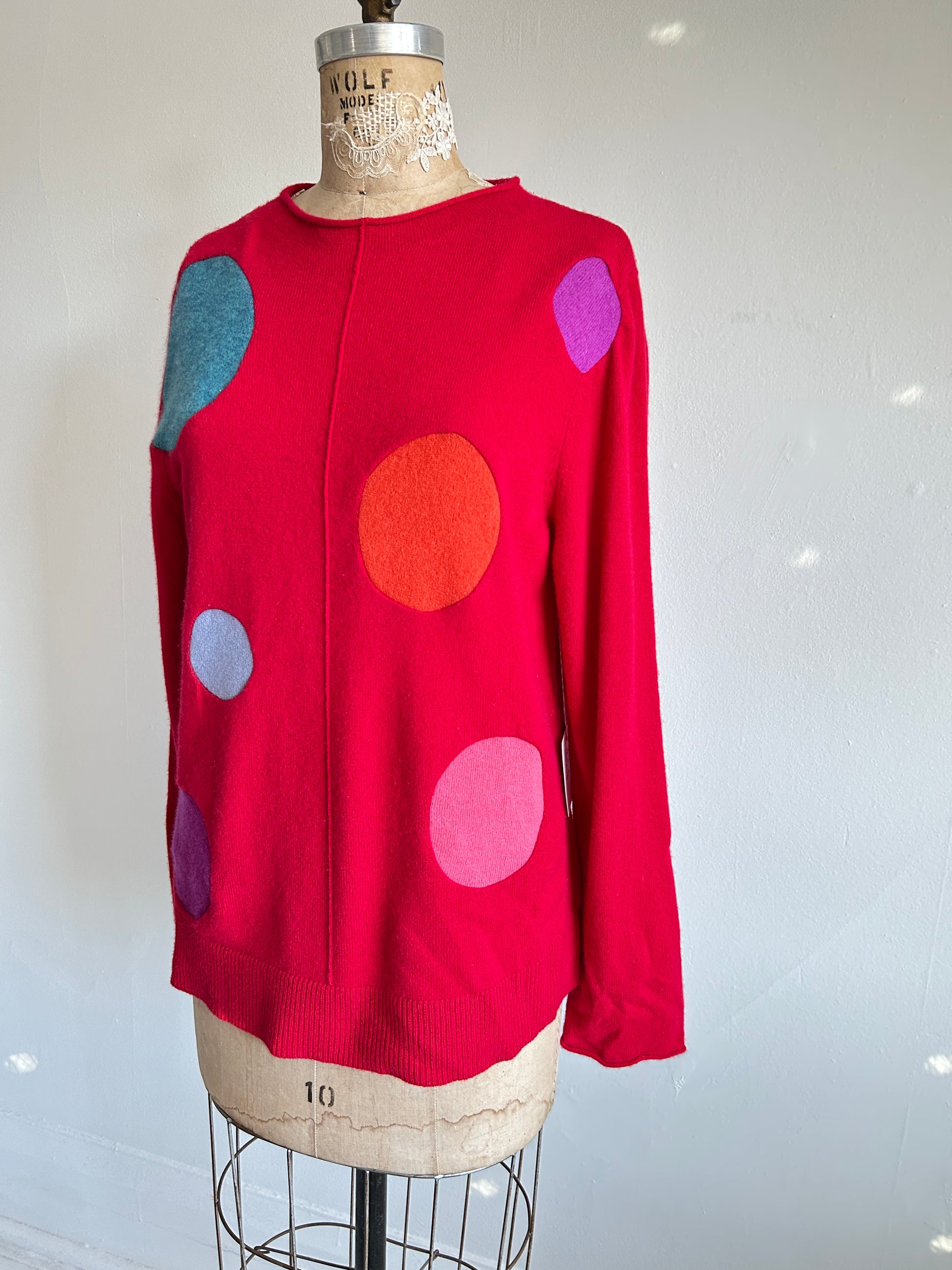This upcycled cashmere sweater is eco chic, with one-of-a-kind, thoughtfully placed, inset patches - making it a modern piece of wearable art.