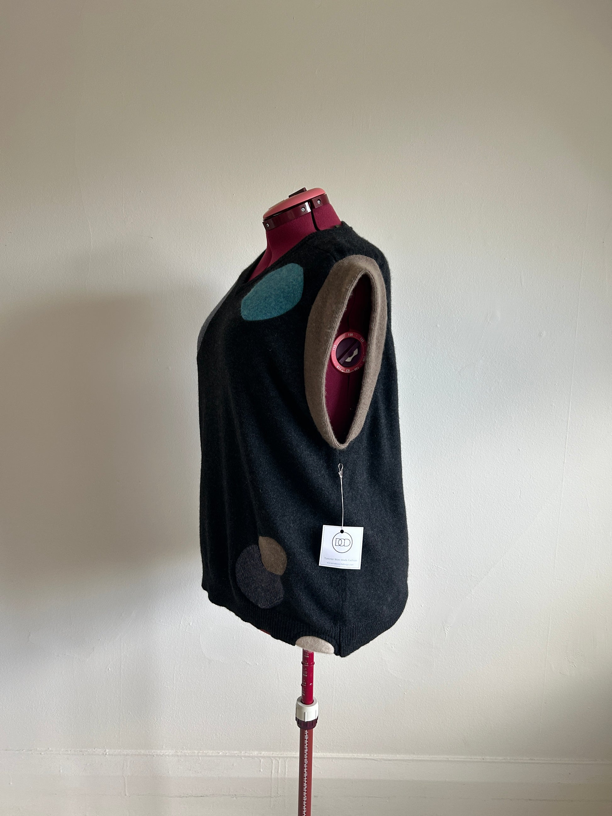 Abstract Art Patched Upcycled Cashmere Vest Size 3X/4X #CAV34X32