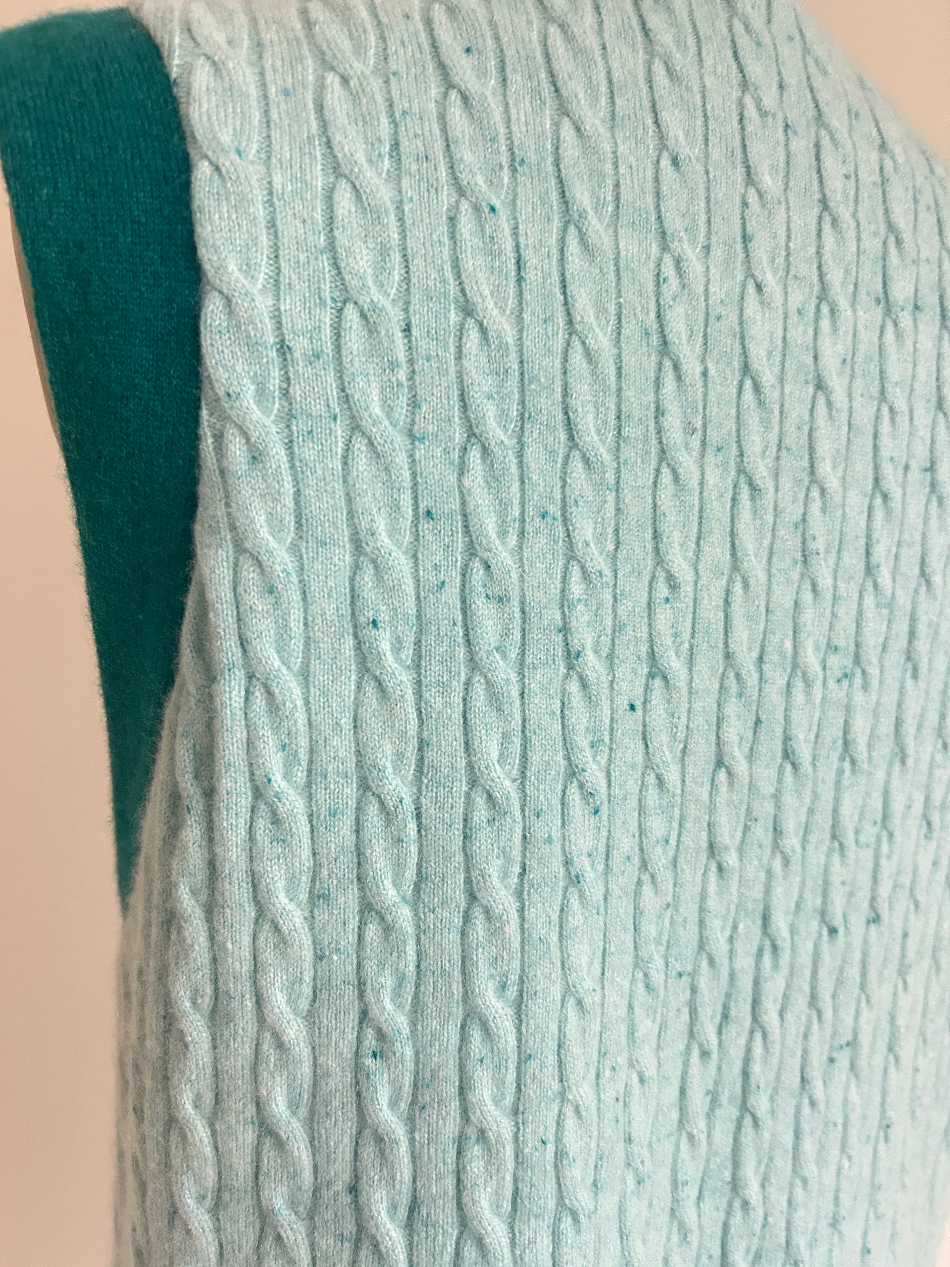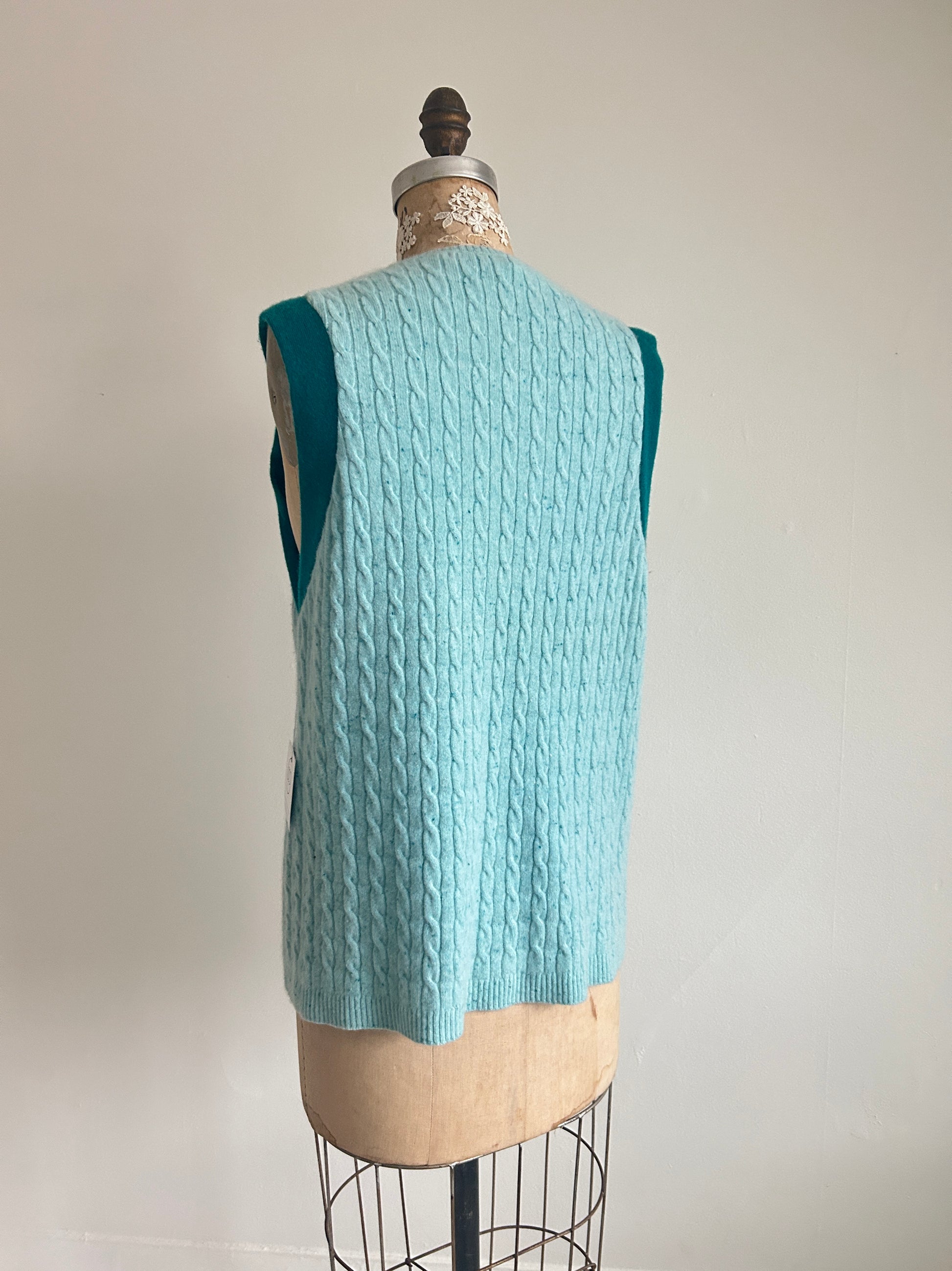 This upcycled cashmere sweater vest is eco chic, with one-of-a-kind, thoughtfully placed, inset patches to repair this preloved sweater - making it a modern piece of wearable art.
