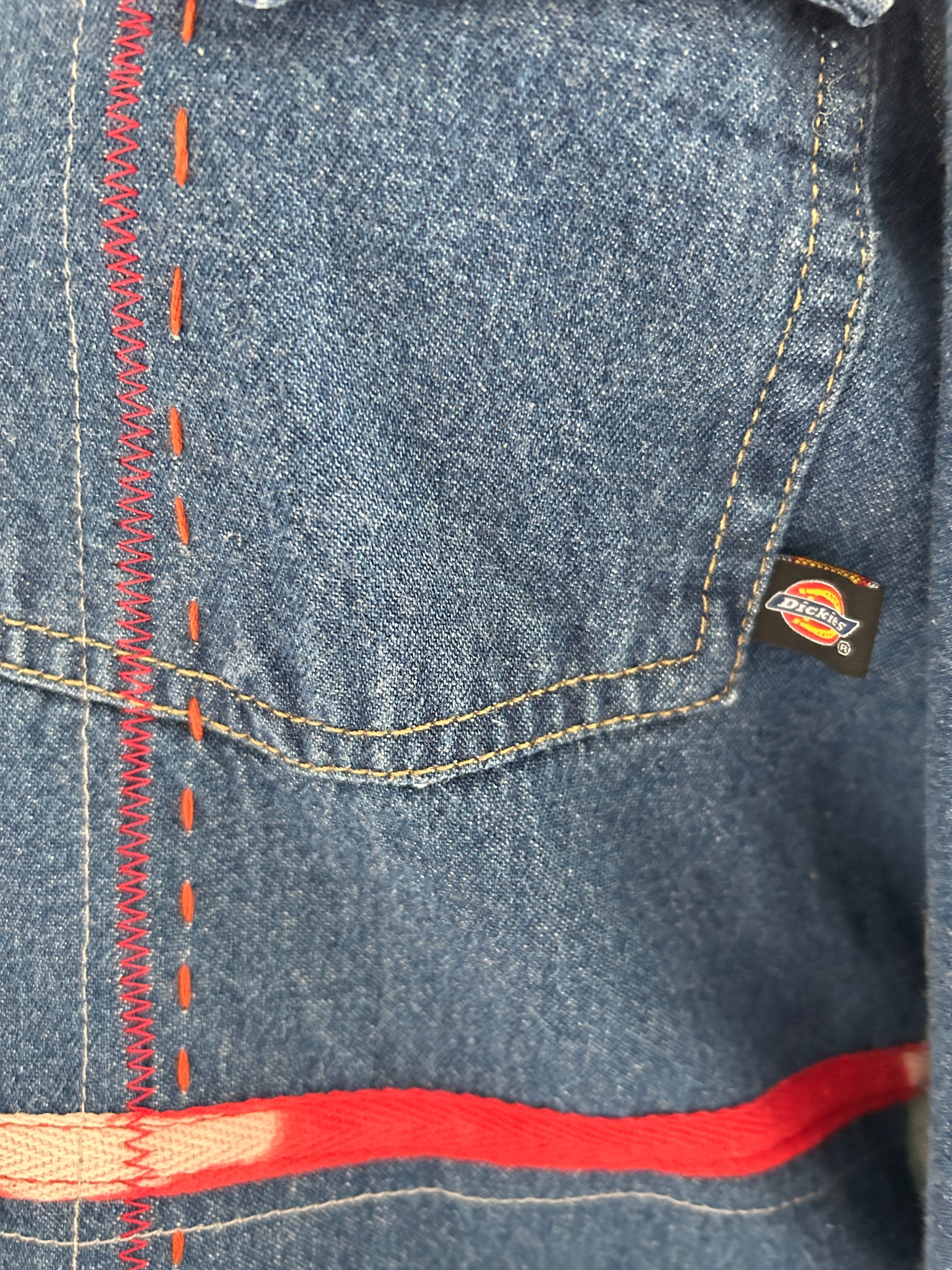 Ellis Reclaimed Patchwork Dickies Denim Shirt with Handstitching & Hand Dyed Twill Ribbon XL/2X #ELL10