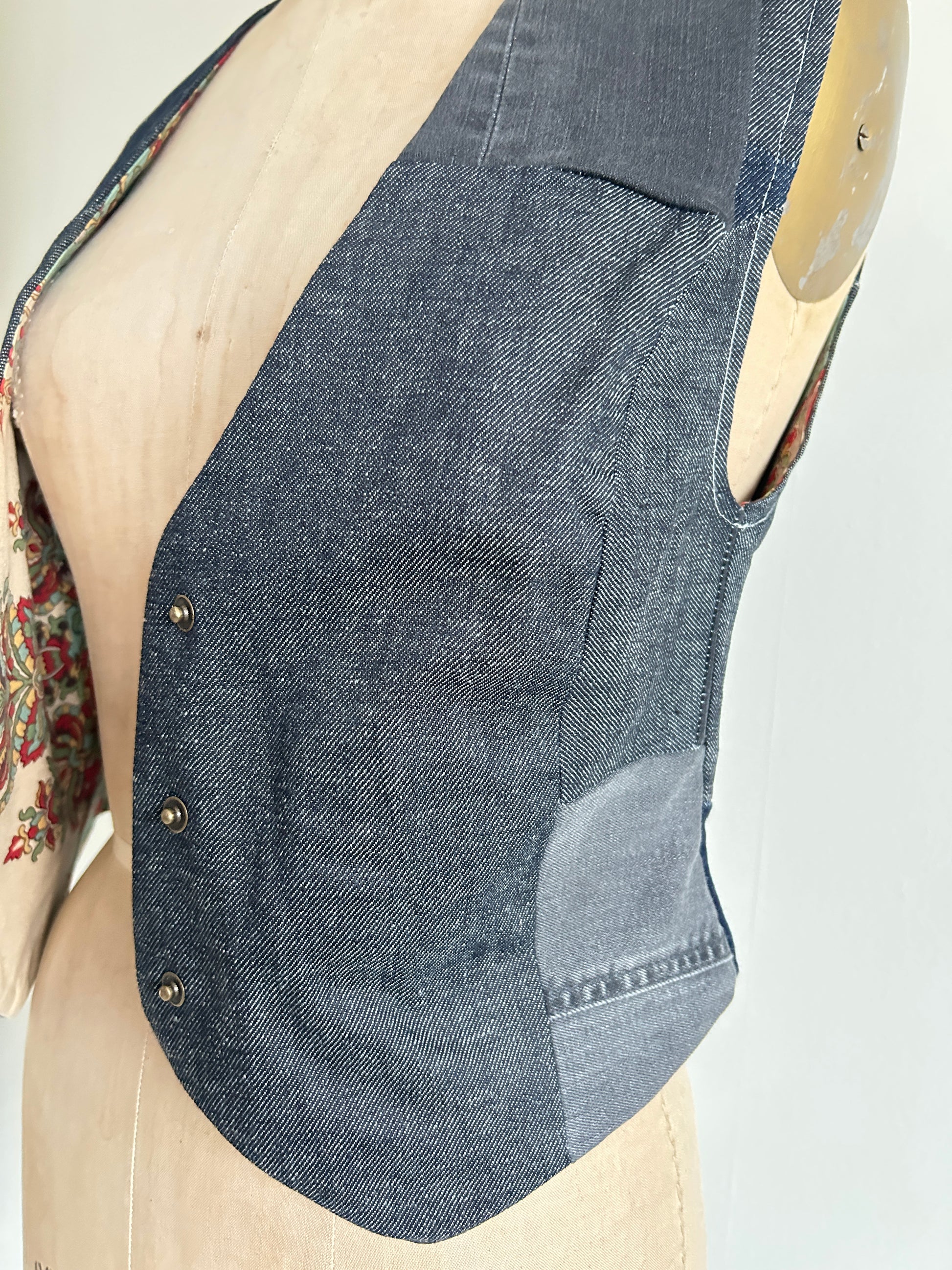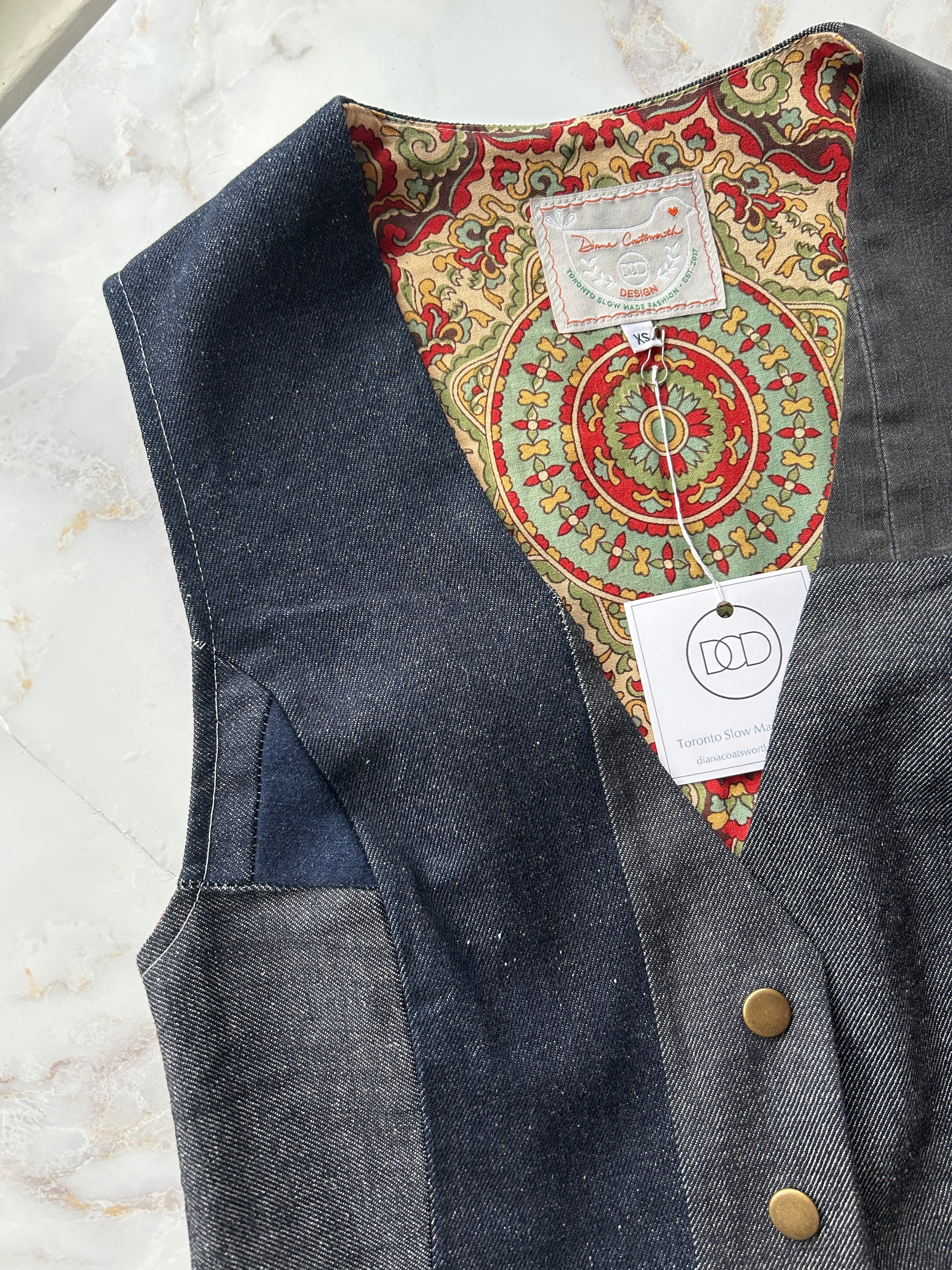 Leni Reclaimed Patchwork Denim Vest with Cotton Lining XS #DVXS12