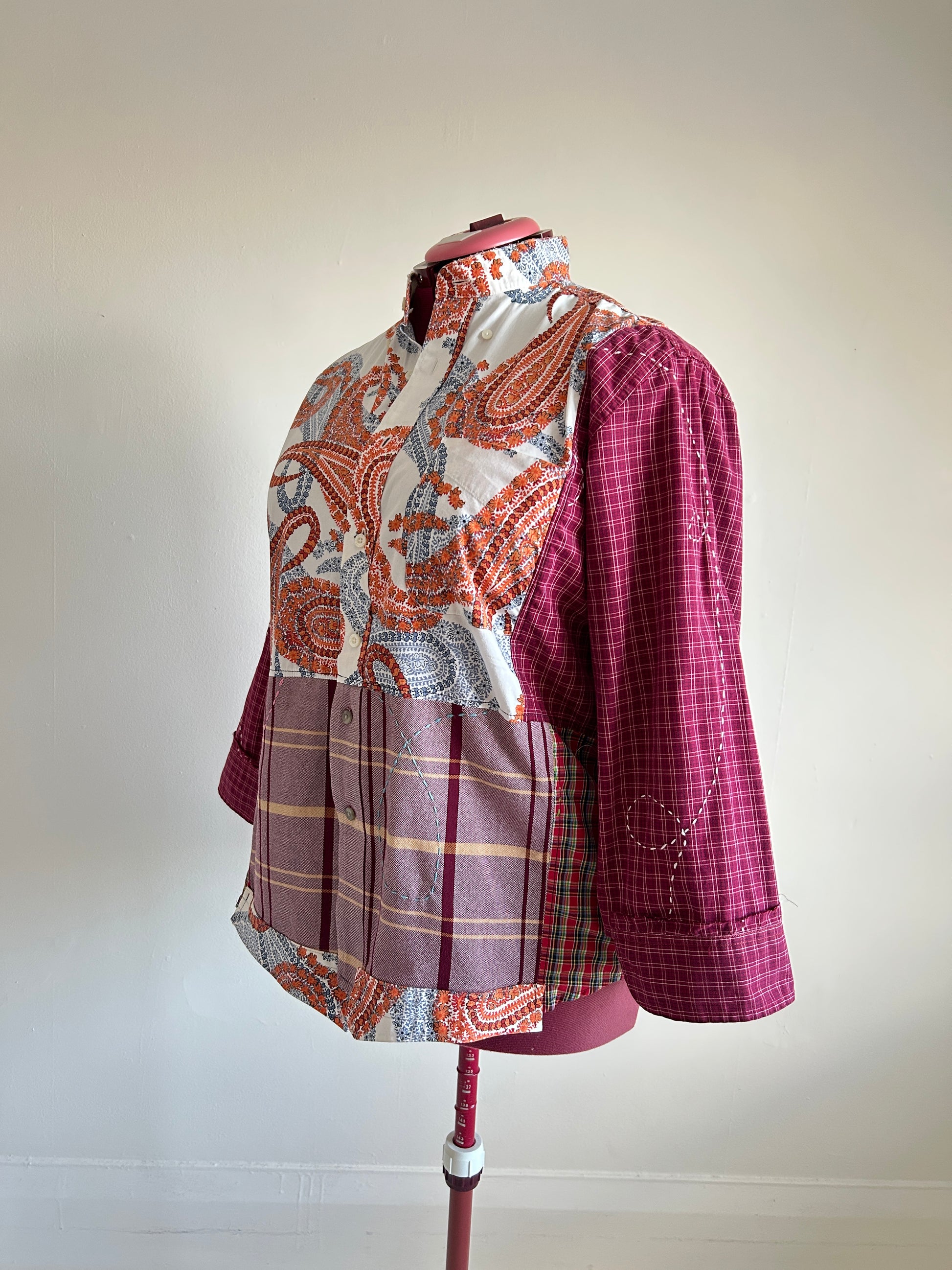 Reworked “Tuxedo Workwear” Buttondown Shirt with Handstitching 2X #TB23X7