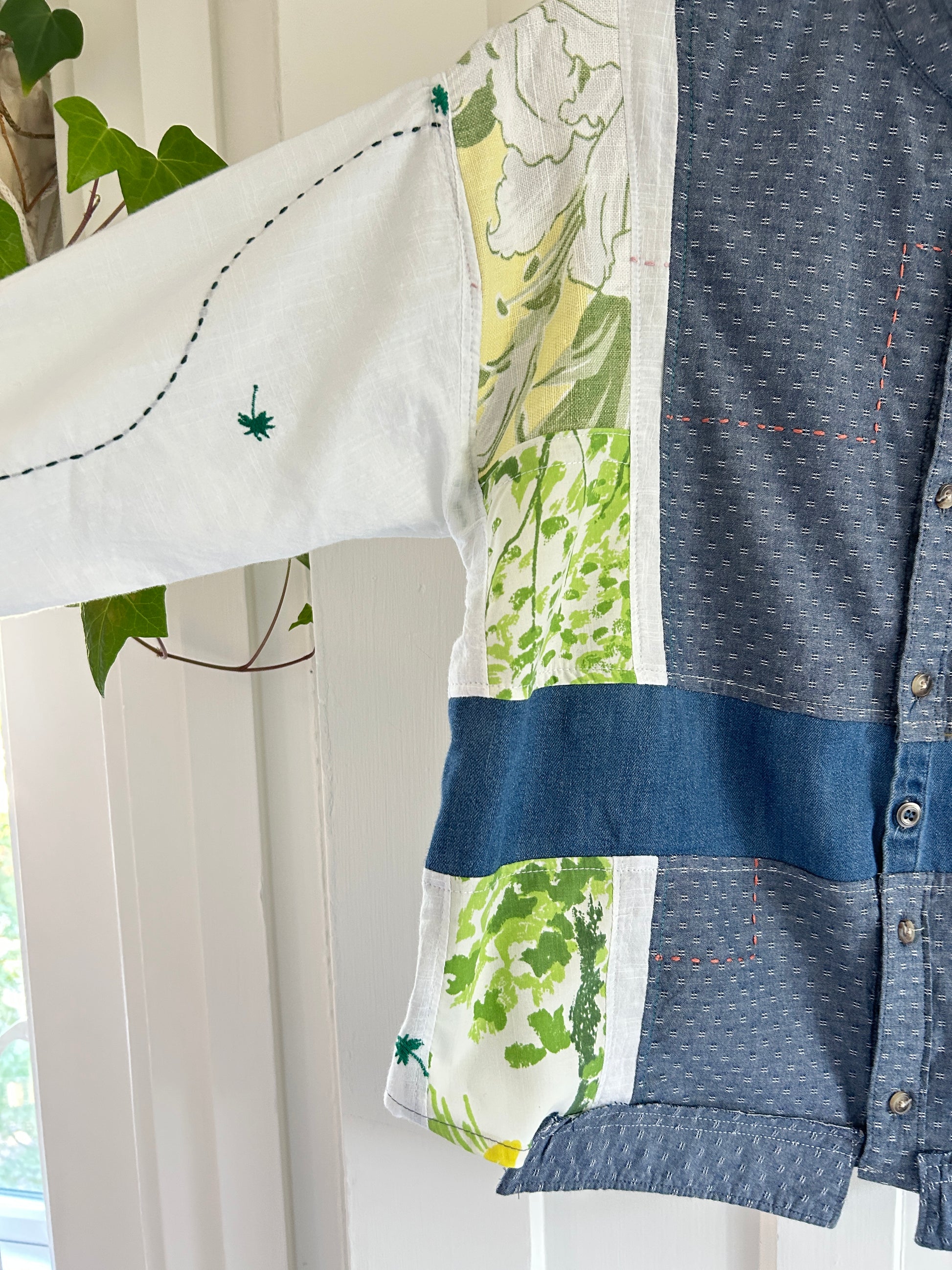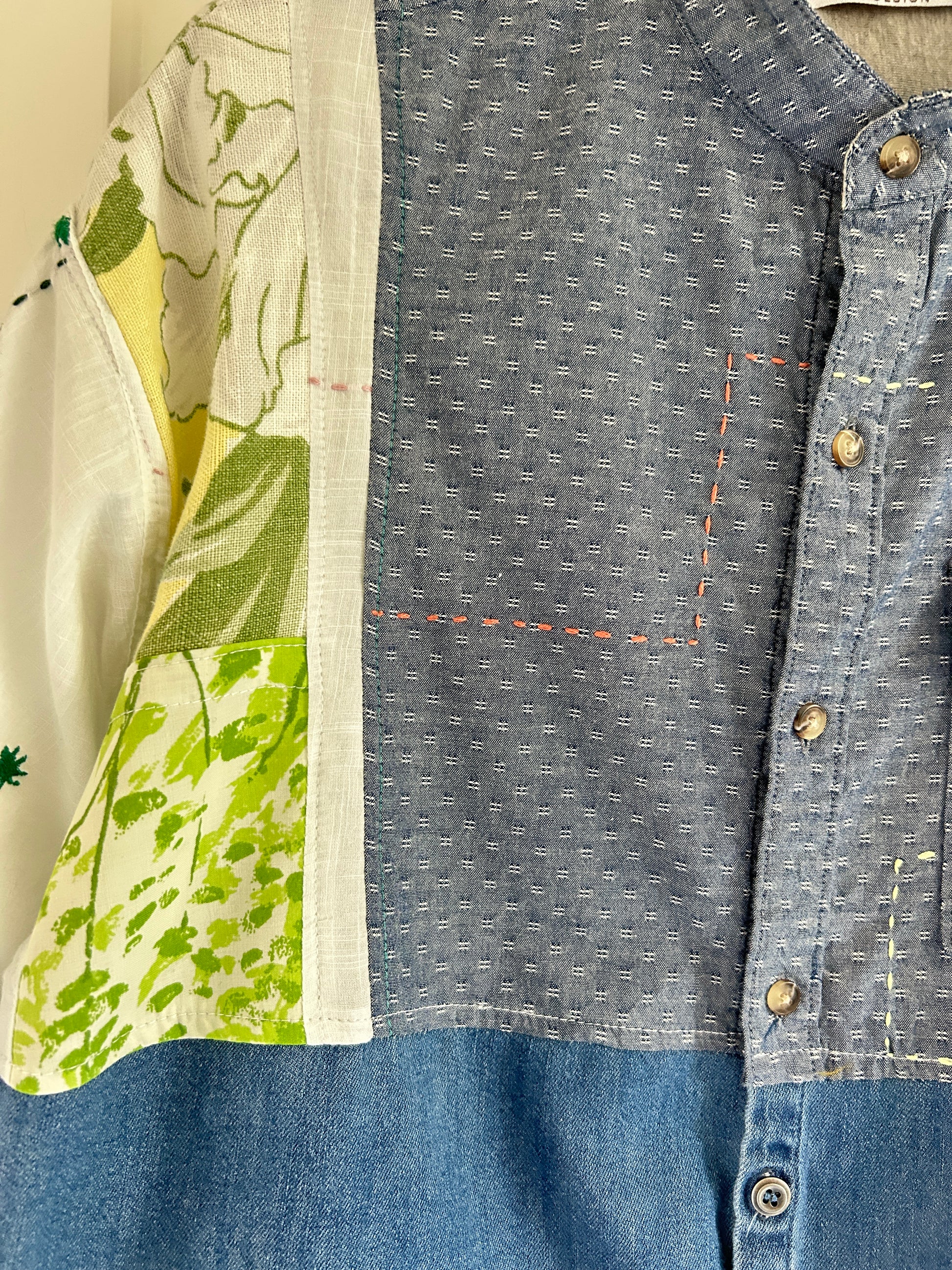 Reworked “Tuxedo Workwear” Buttondown Shirt with Handstitching S/M #TBSM1