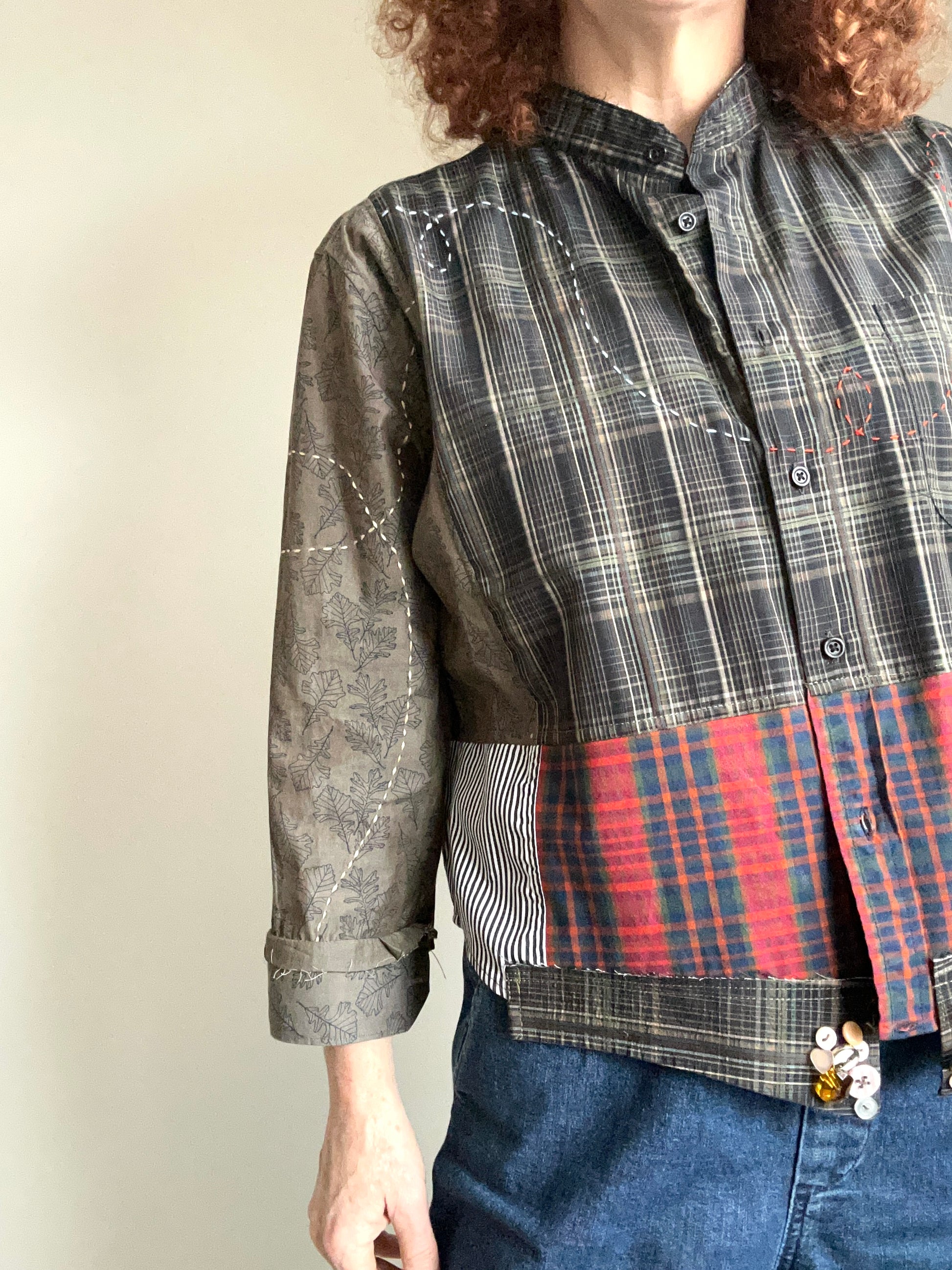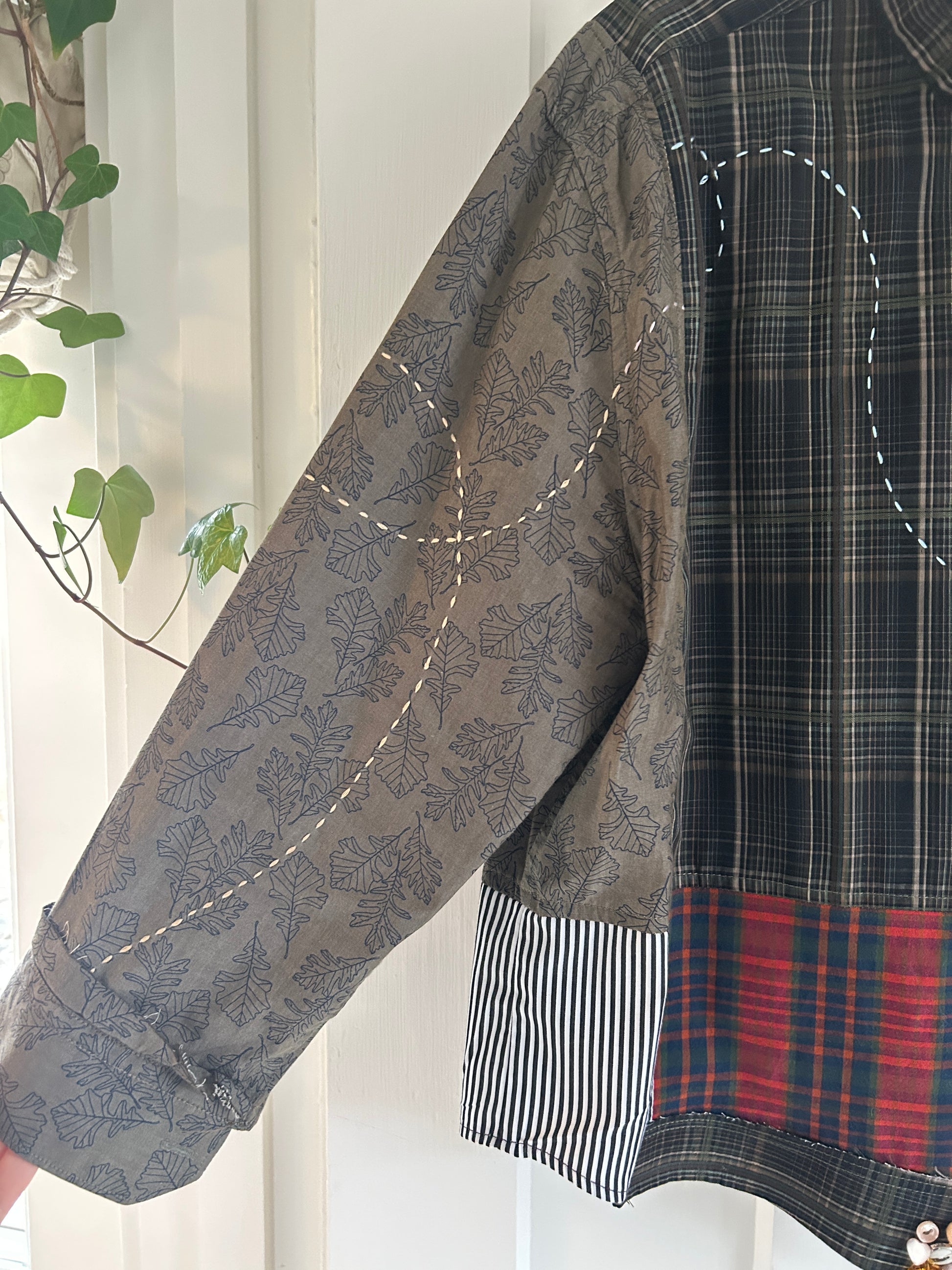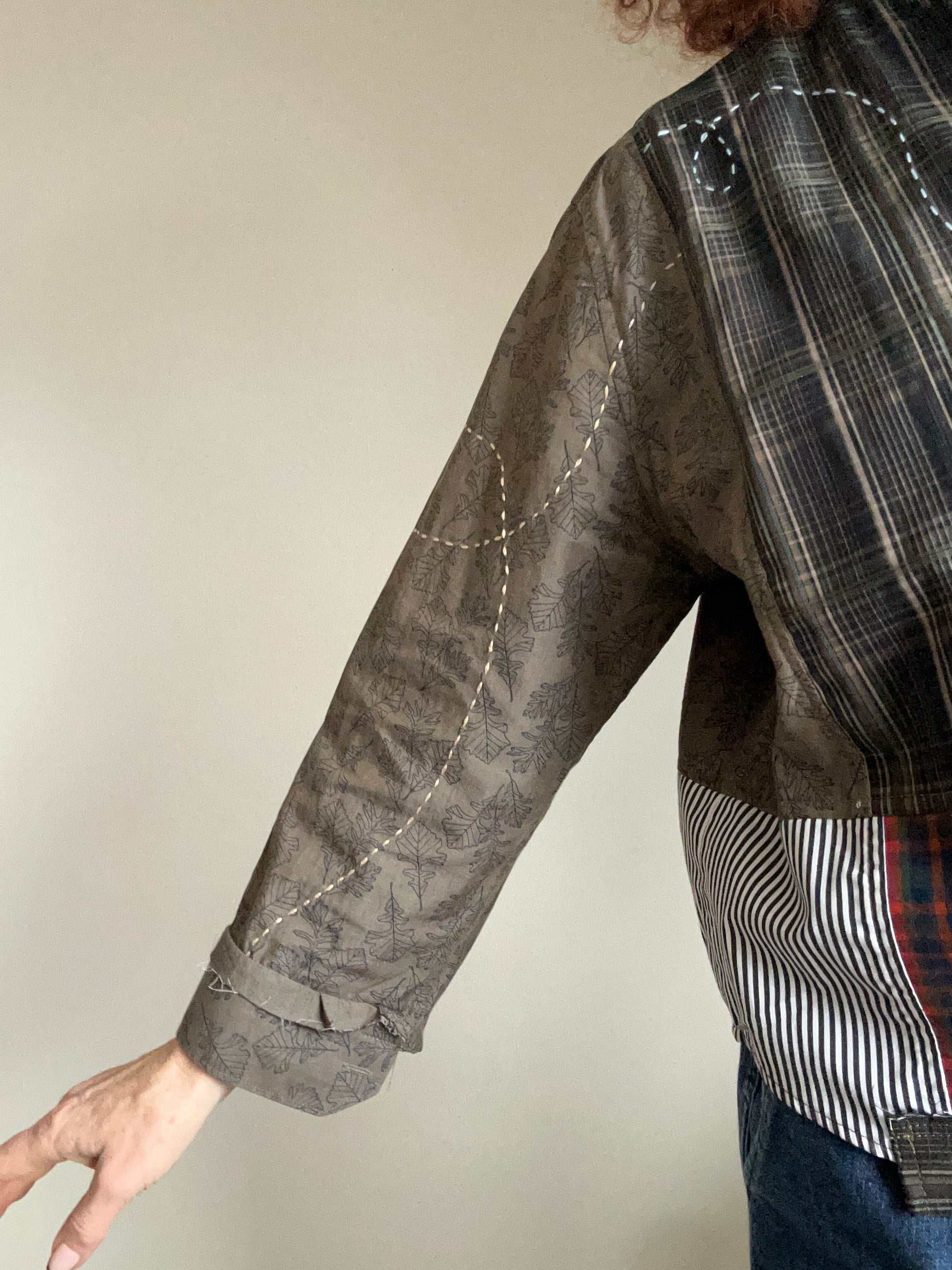 Reworked “Tuxedo Workwear” Buttondown Shirt with Handstitching XL/2X #TBX2X19