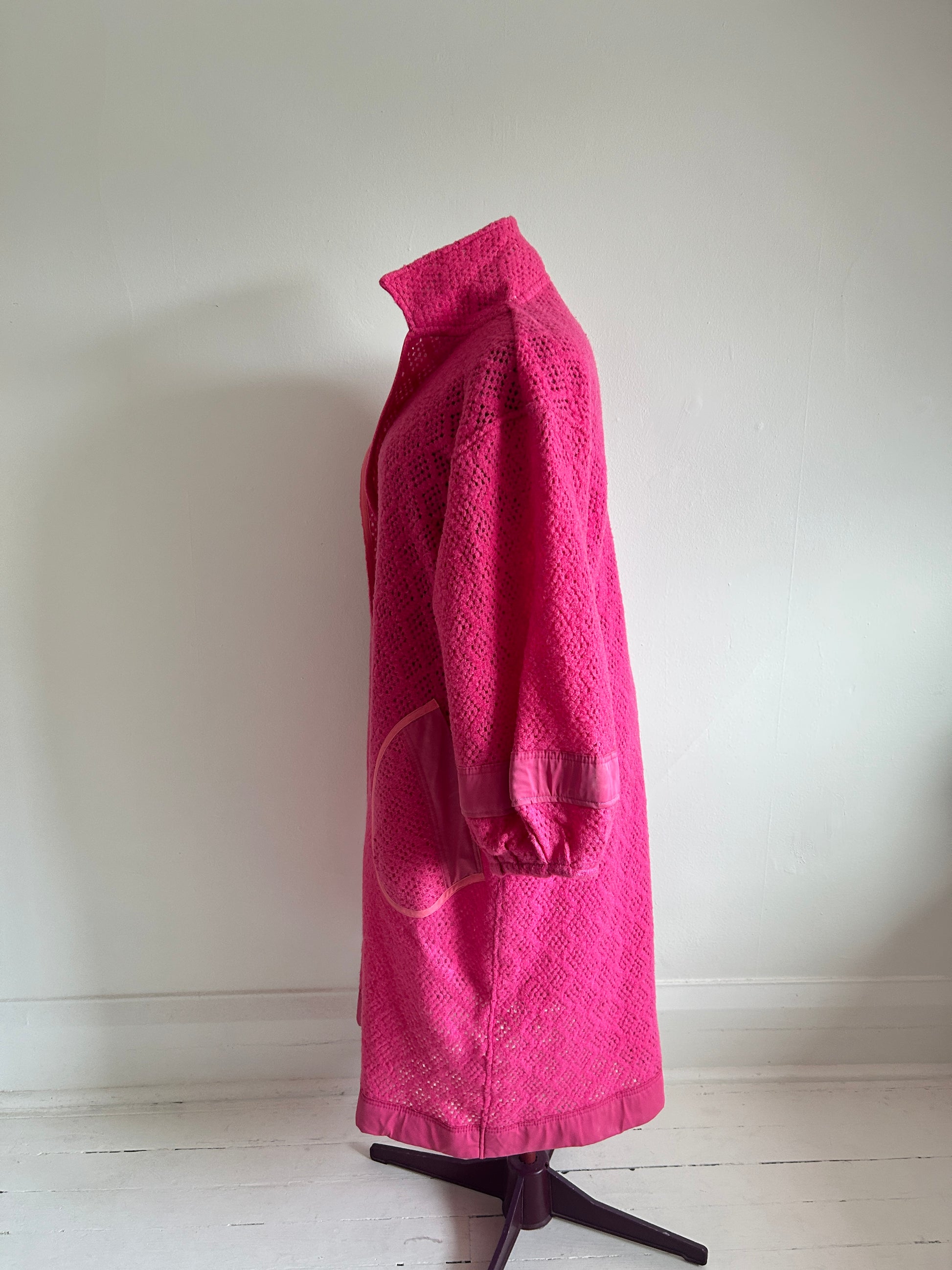 Trench coat made with upcycled textiles: vintage wool or wool blend blanket