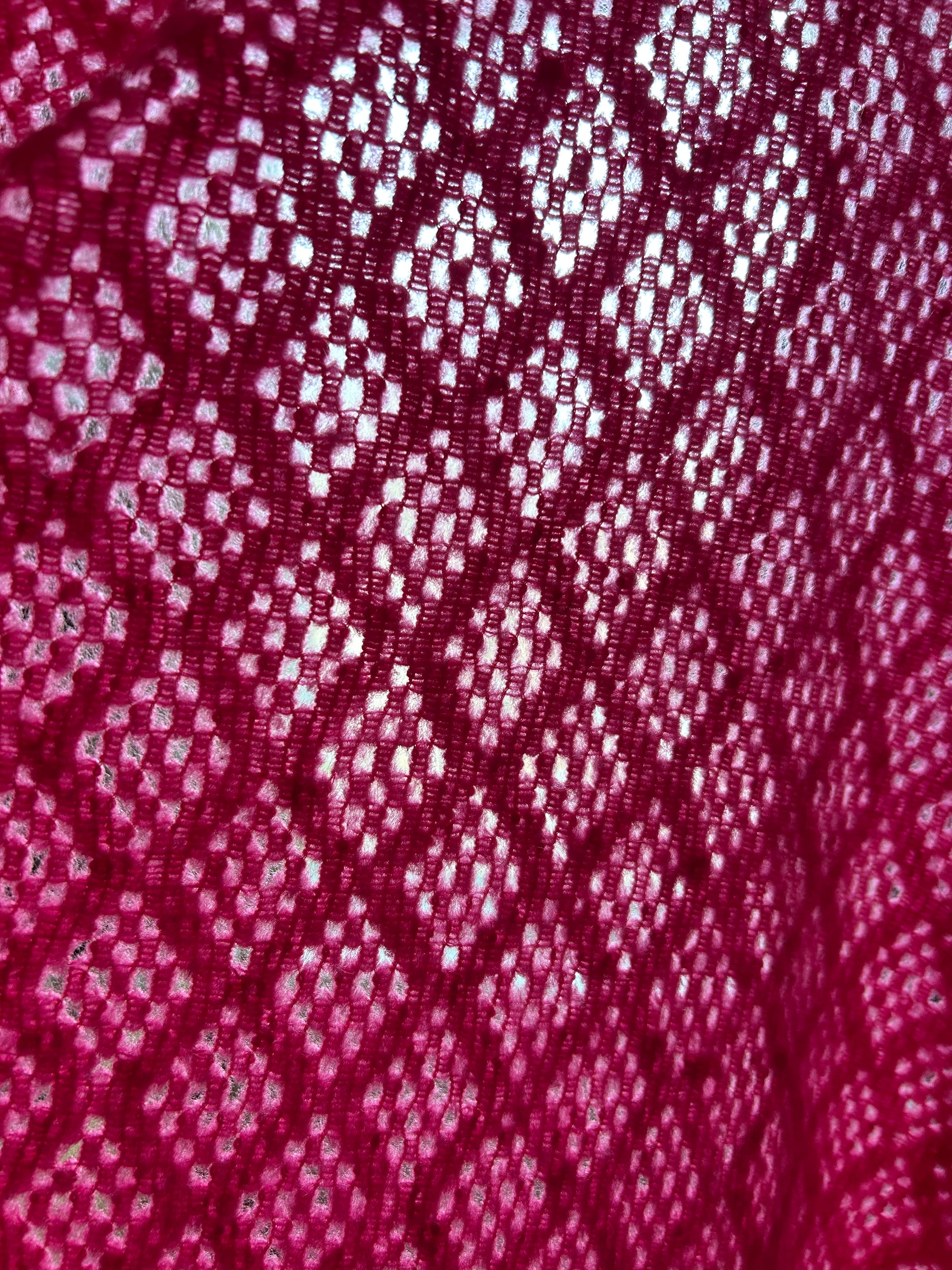 note: lightweight fabric is knit with “holes” in a diamond pattern