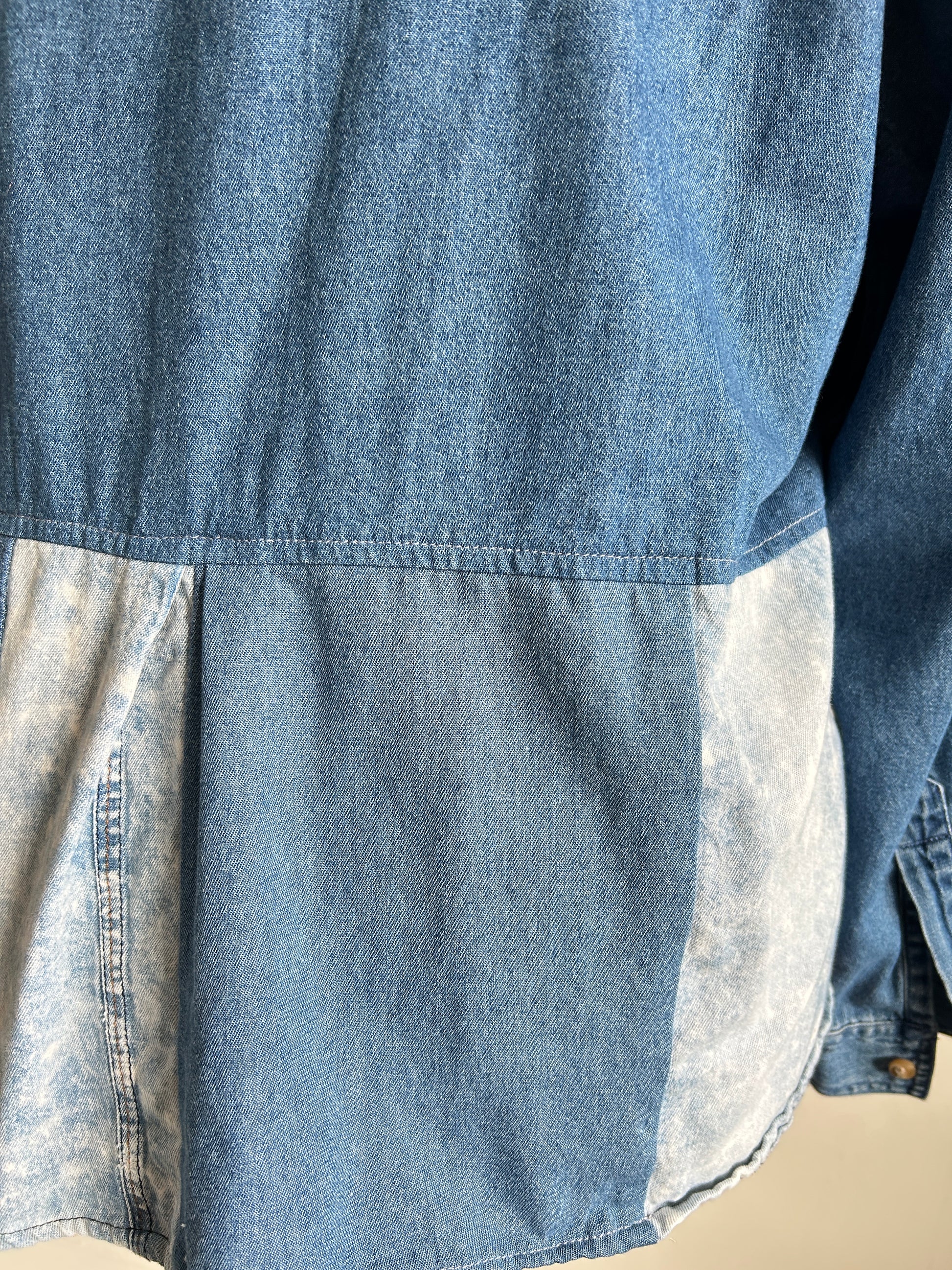 Upcycled Modern Workwear Denim Shirt - Circle Series with hand painting Size XL/2X #DEN1