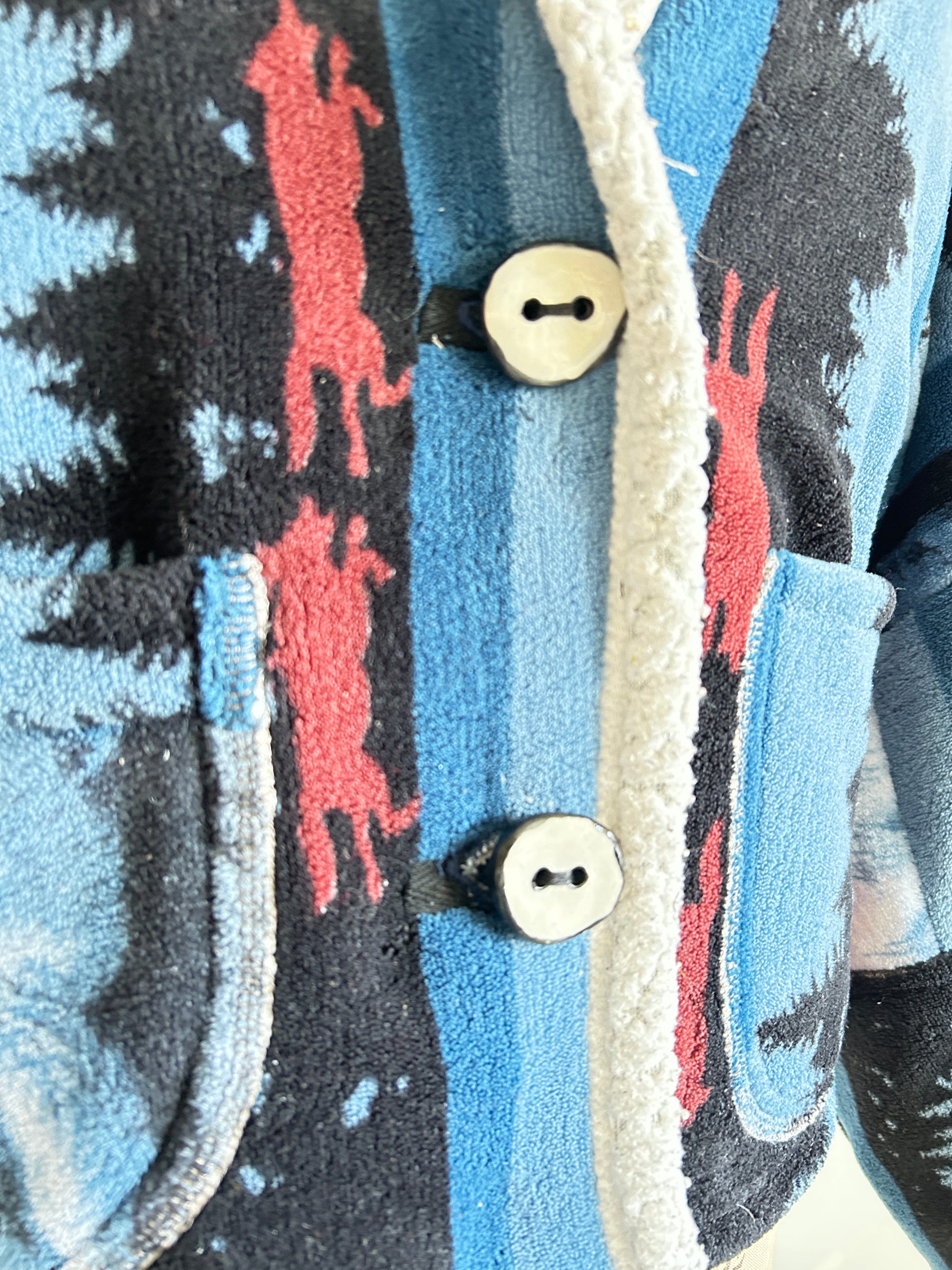 Vivianne Cropped Jacket with Upcycled Fleece Throw Blanket Wolf Size M/L #VIVFLE2