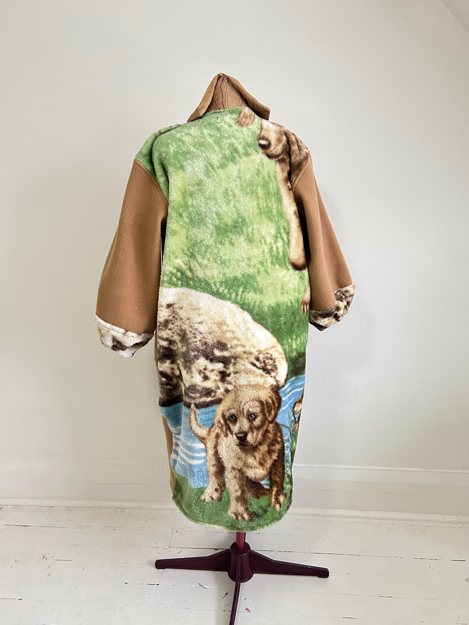 Vivianne Duster with Upcycled Fleece & Vintage Wool Blanket Puppy Theme Size XL/2X #CVDW23X30