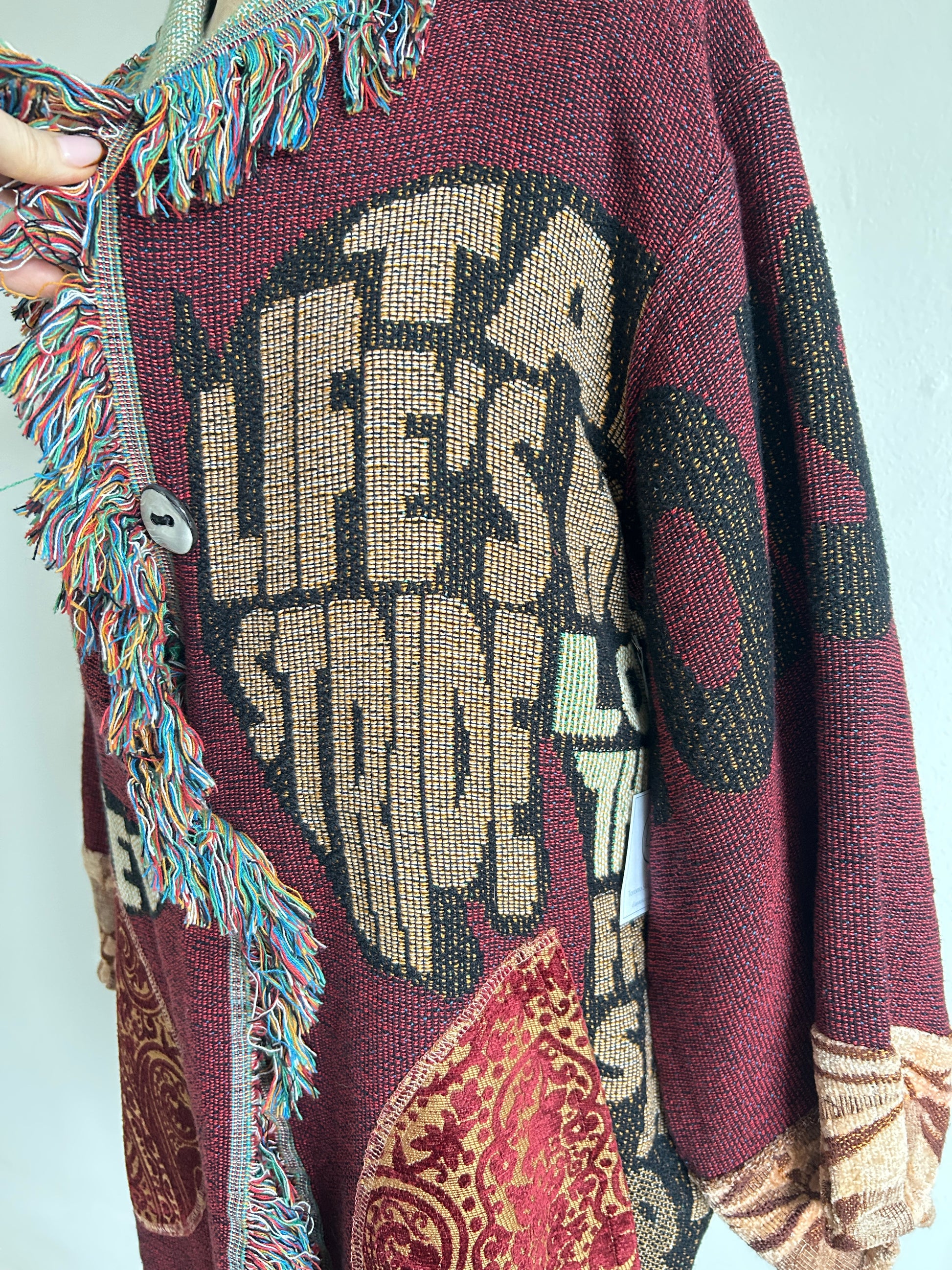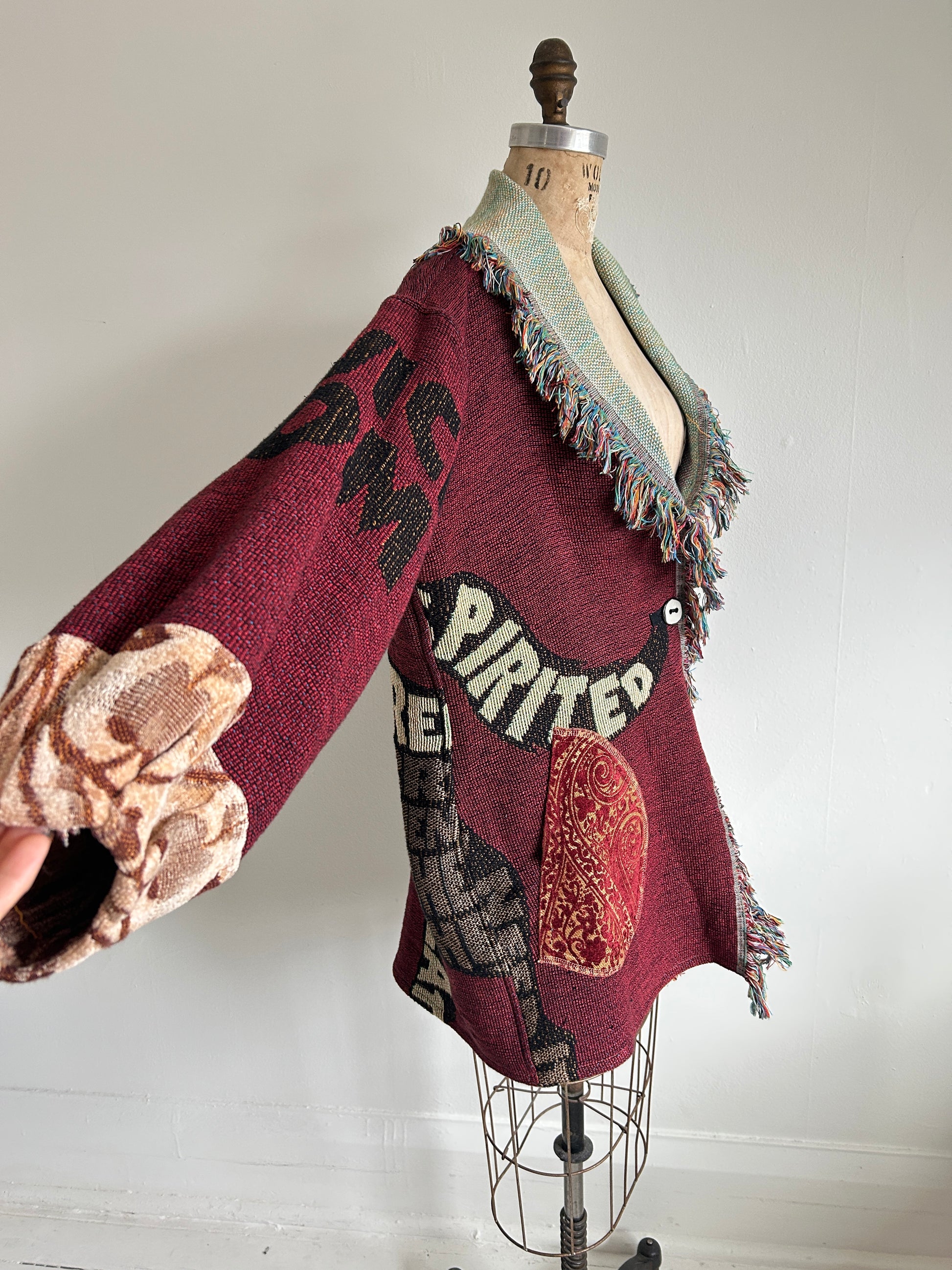 Upcycled throw blanket and vintage drapery jacket in the classic Vivianne design.