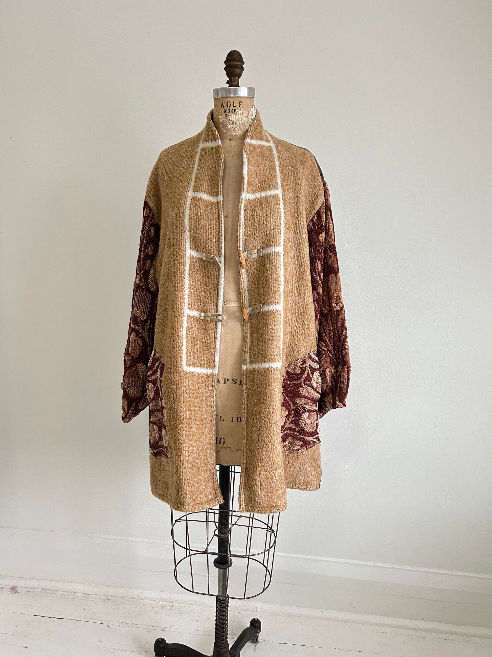 Vivianne Jacket with Upcycled Vintage Wool & Throw Blanket & Leather & Wooden Toggles Size XL/2X #CVJWX2X44